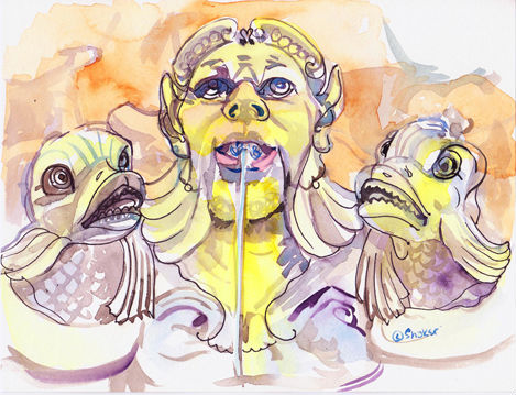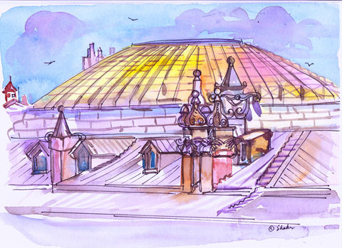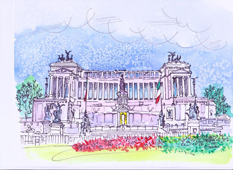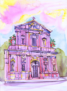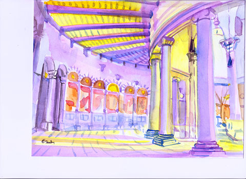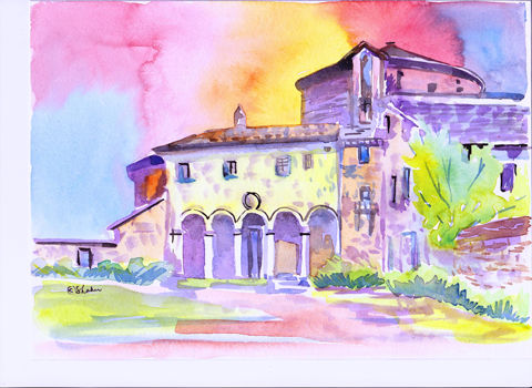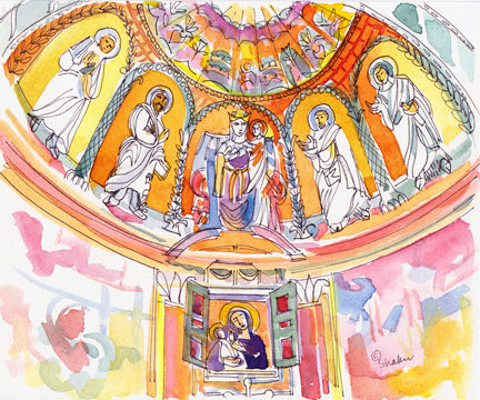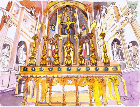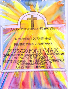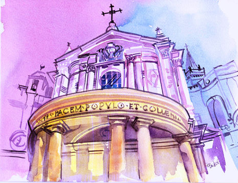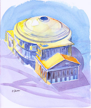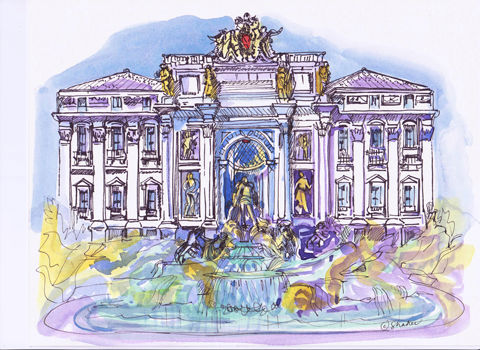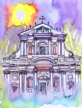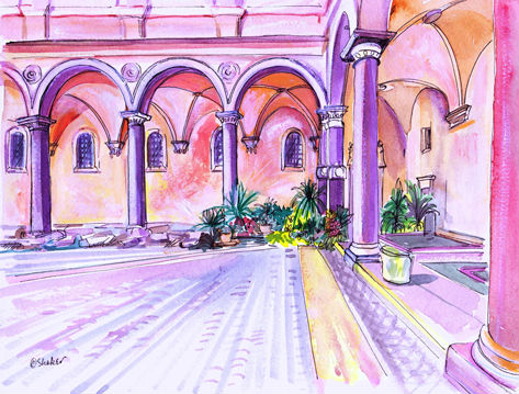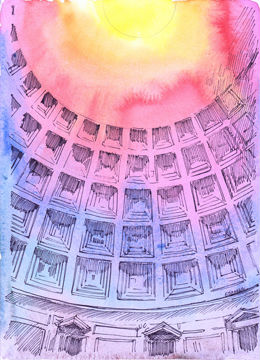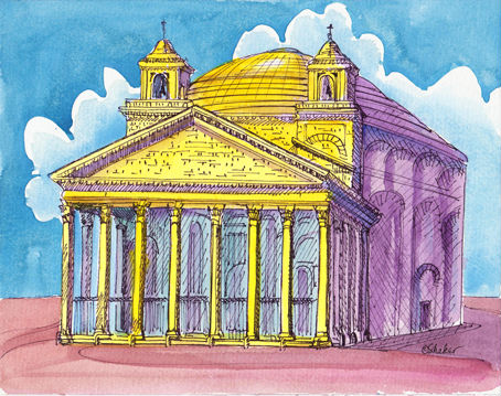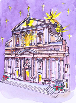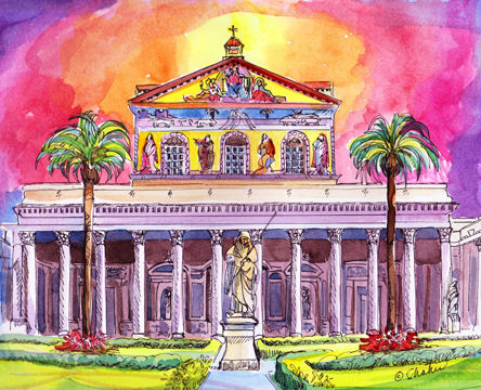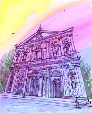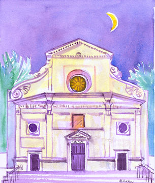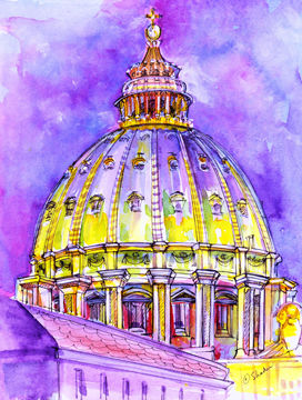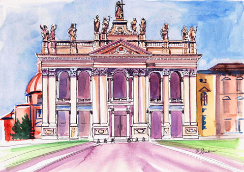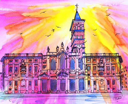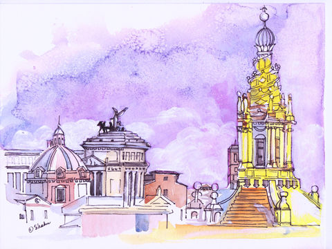 The Rome 360ยบ project has been enhanced through watercolor interpretations provided by Mary Alice Shaker. Passion, spirituality, beauty and marvel associated with these temples of worship become all the more intense when presented by her.